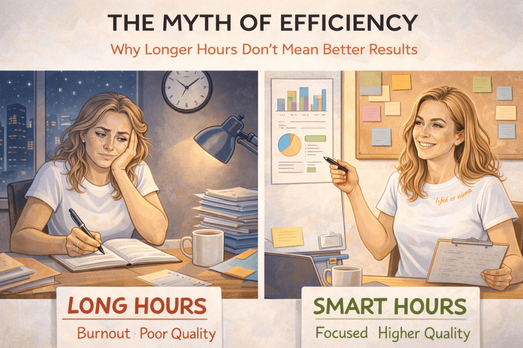 Það er útbreidd skoðun að því lengur sem við vinnum, því meira afköstum við. Þessi hugsunarháttur er ekki aðeins rangur — hann getur verið beinlínis skaðlegur.